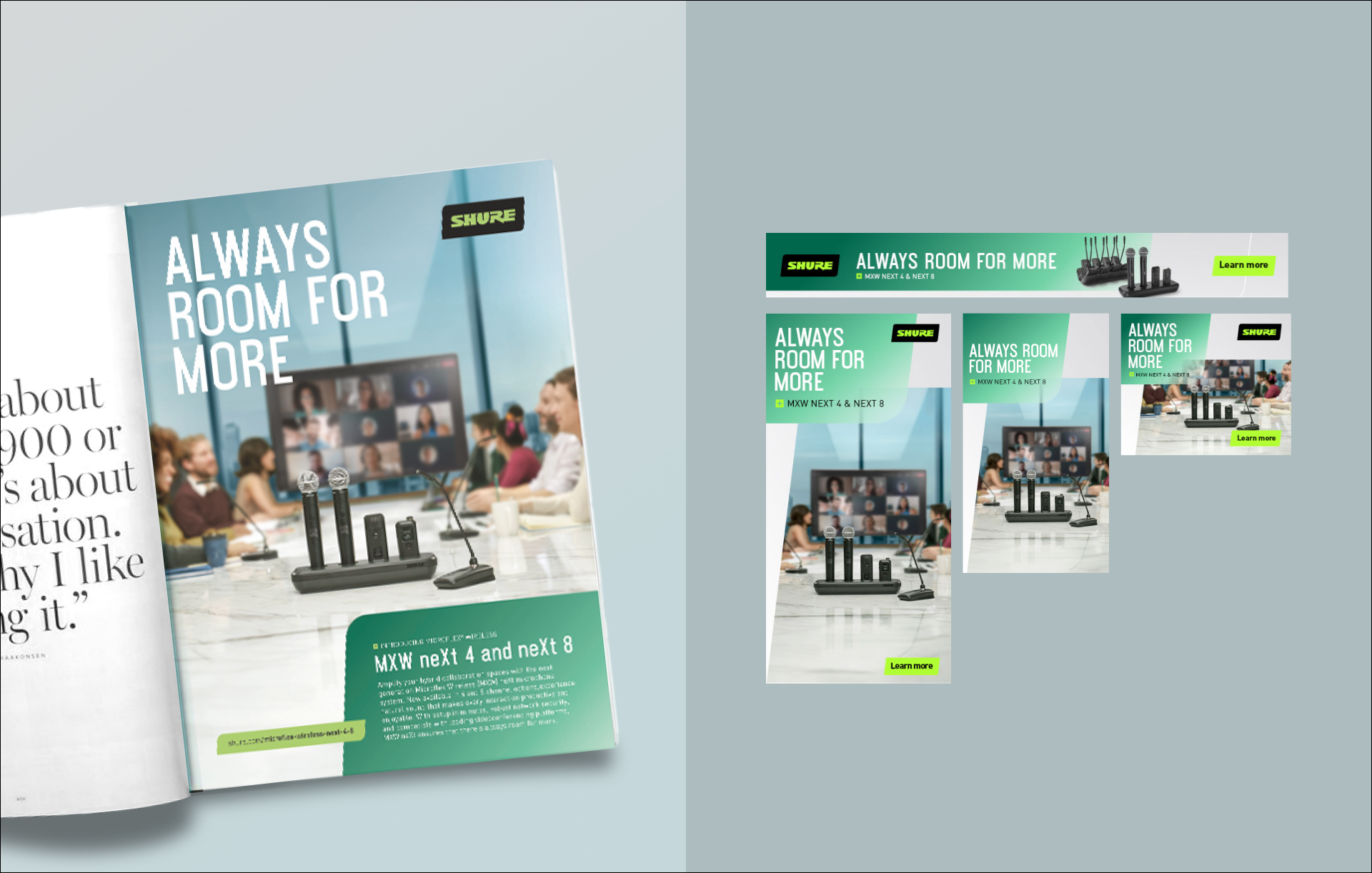 Positioned as a new chapter in wireless conferencing, the MXW neXt 4 and 8 reinforce the idea that there’s always room to expand. The campaign rolled out across digital, events, print, social, and trade, delivering 40 assets supported by a fully integrated go-to-market approach, and underscoring Shure’s continued focus on innovation.